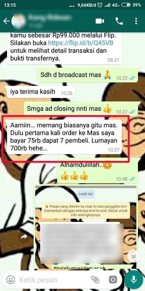 2. Setelah orderannya AKTIF. Maka langsung Cek Bonus Di member area.