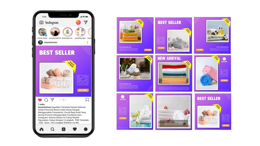 Gramdes merupakan template banner Instagram premium siap pakai yang terdiri dari berbagai niche yang dapat diedit dengan mudah menggunakan powerpoint saja. Dengan Gramdes, anda dapat dengan mudah membuat banner Instagram yang eye-catching untuk meningkatkan penjualan anda.