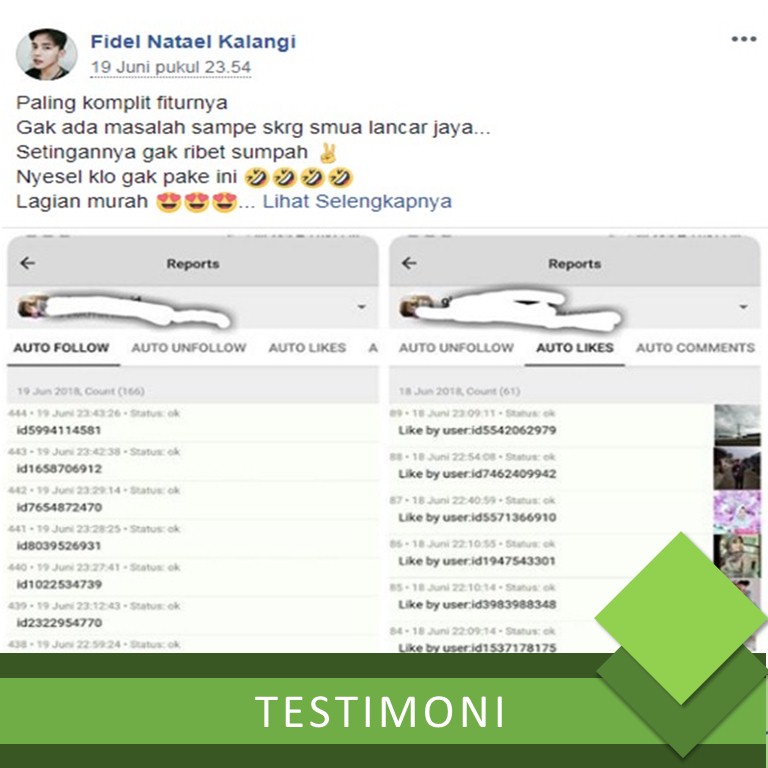 Memfollow akun followers tertarget serta memberikan like secara otomatis dan bekerja sekaligus bersamaan.