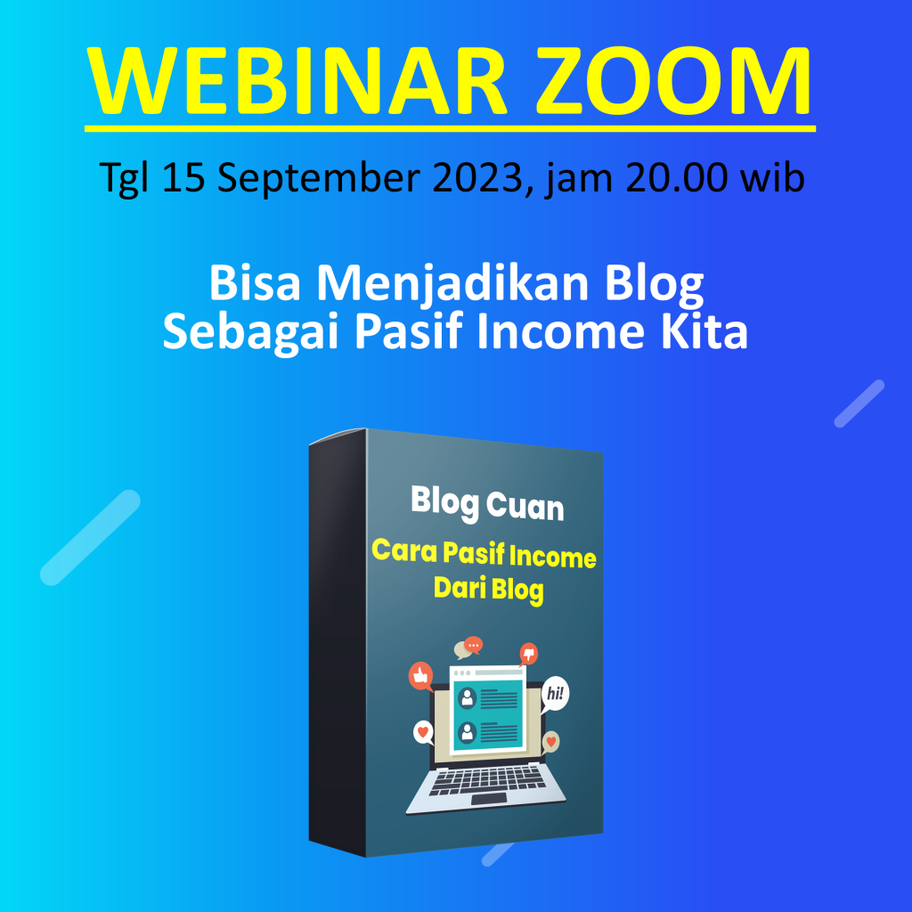 Webinar Blog Cuan adalah webinar yang berisi materi bagaimana bisa membuat blog yang dapat menghasilkan cuan dan akhirnya bisa dijadikan Pasif Income untuk kita.