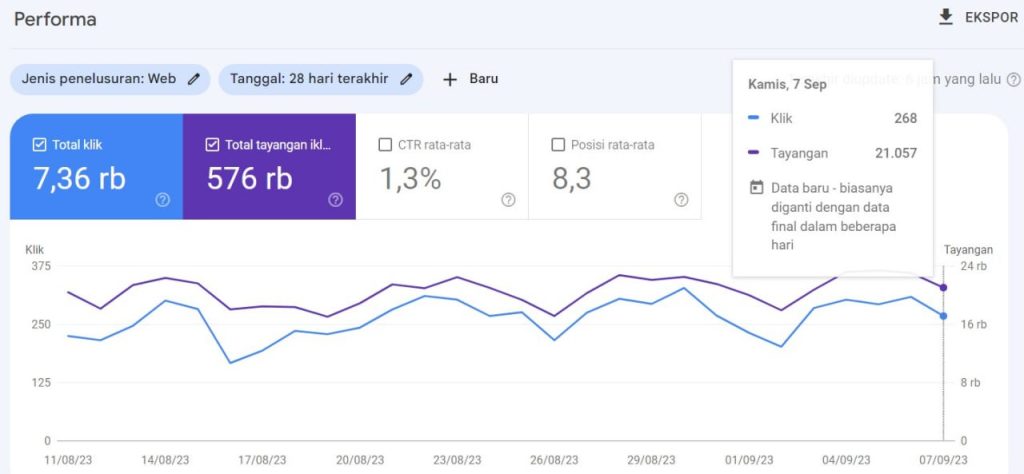 Dari data di atas, dilihat dari jumlah tayangan dan klik, tentunya akan berpengaruh pada penghasilan anda.