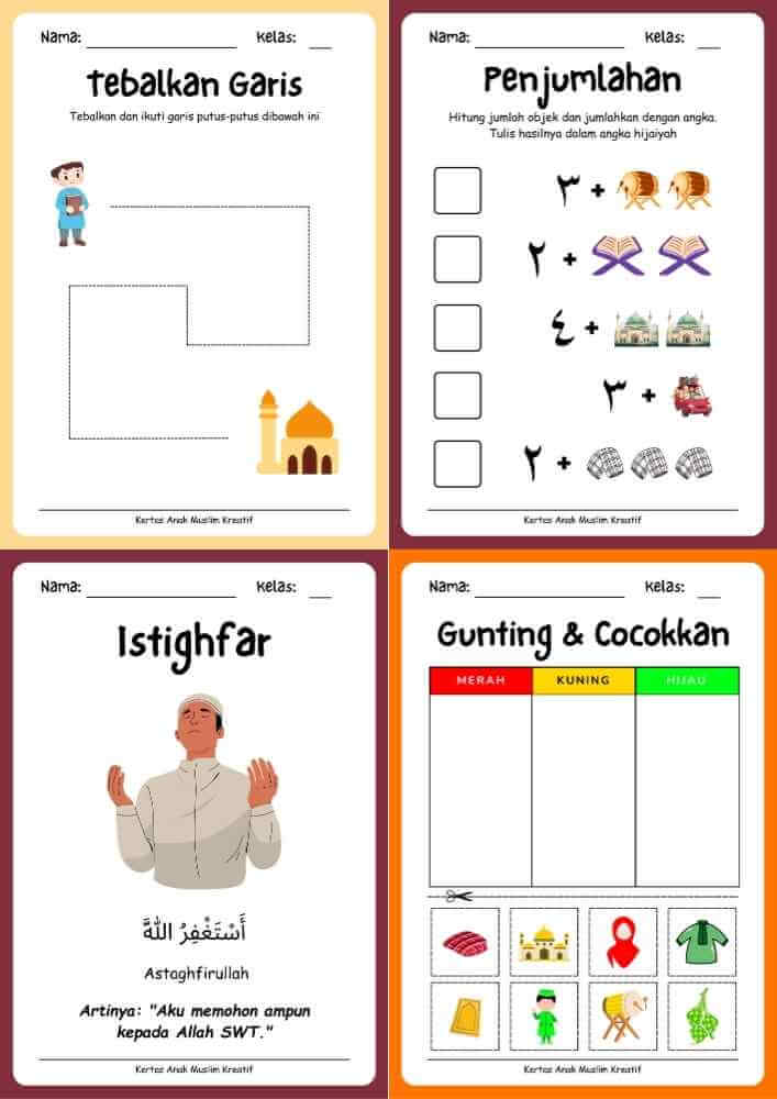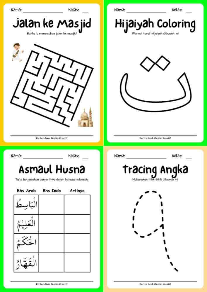 Total 1000 template kertas berisi berbagai aktivitas menarik untuk anak muslim